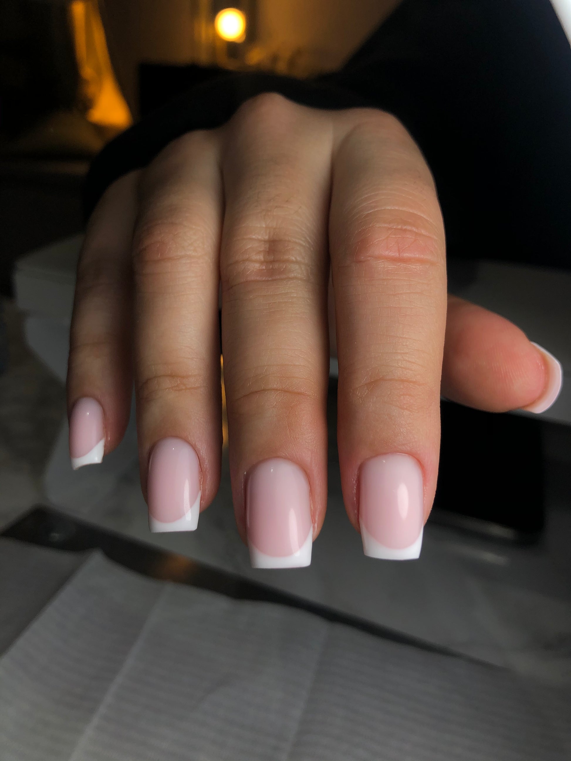 3. Breng een dun strijklaagje basecoat aan en hard deze 60 seconde uit onder een LED lamp. (TIP: zorg ervoor dat je de basecoat secuur aanbrengt. Waar je geen basecoat hebt ingepoetst, heb je ook geen hechting van je product).